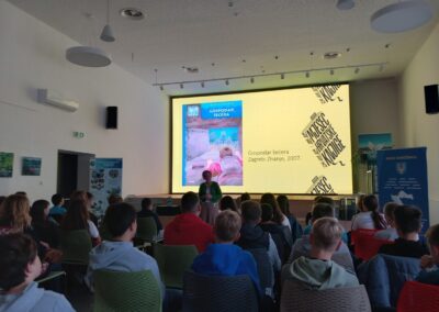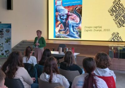 Mjesec hrvatske knjige obilježava se od 15. listopada do 15. studenog i ove godine je posvećen knjižničarima. 7. studenog 2025. učenici šestih razreda naše škole prisustvovali su književnom susretu s Nadom Mihaljević, književnicom za djecu i mlade i knjižničarkom u Nacionalnoj i sveučilišnoj knjižnici. Susret je održan u Centru Natura 2000 u suradnji s Nakladom Ljevak.
