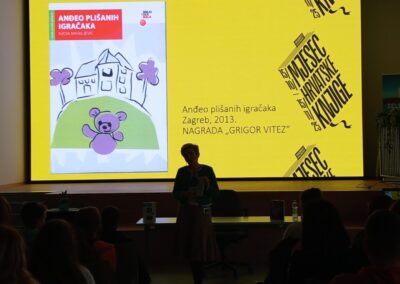 Autorica je učenicima predstavila svoje romane za djecu i mlade, a osobito one nagrađene „Grigorom Vitezom“, „Anđeo plišanih igračaka“ i „Putovanje u mjestu“.