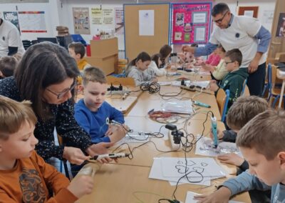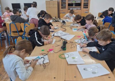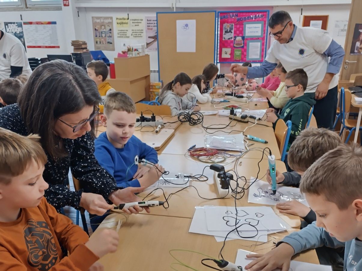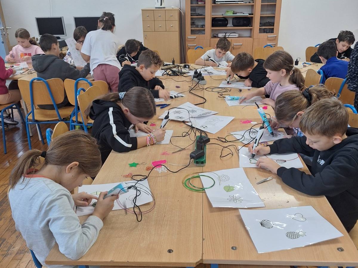 24. studenog 2025. udruga Sferia organizirala je radionicu crtanja 3D olovkama za učenike 3.a i 3.b. Učenici su u školskoj knjižnici crtali 3D olovkama na predlošcima koje su za njih pripremili volonteri udruge. Učenici su ctali razne oblike po vlastitoj želji. Bilo je tu: pahuljica, cvjtova, srca, leptira, guštera i još mnogo toga. Svaki učenik je odnio kući po jedan privjesak s najdražim oblikom koji je sam nacrtao. Svi su pokazali veliki interes za ovu radionicu kao i želju za još nekom sličnom radionicom. Zahvaljujemo se volonterima udruge Sferia i veselimo se ponovnom susretu.