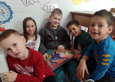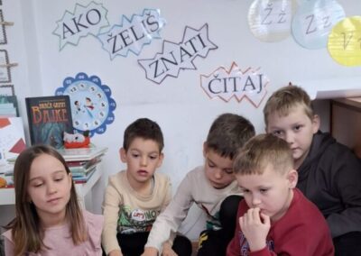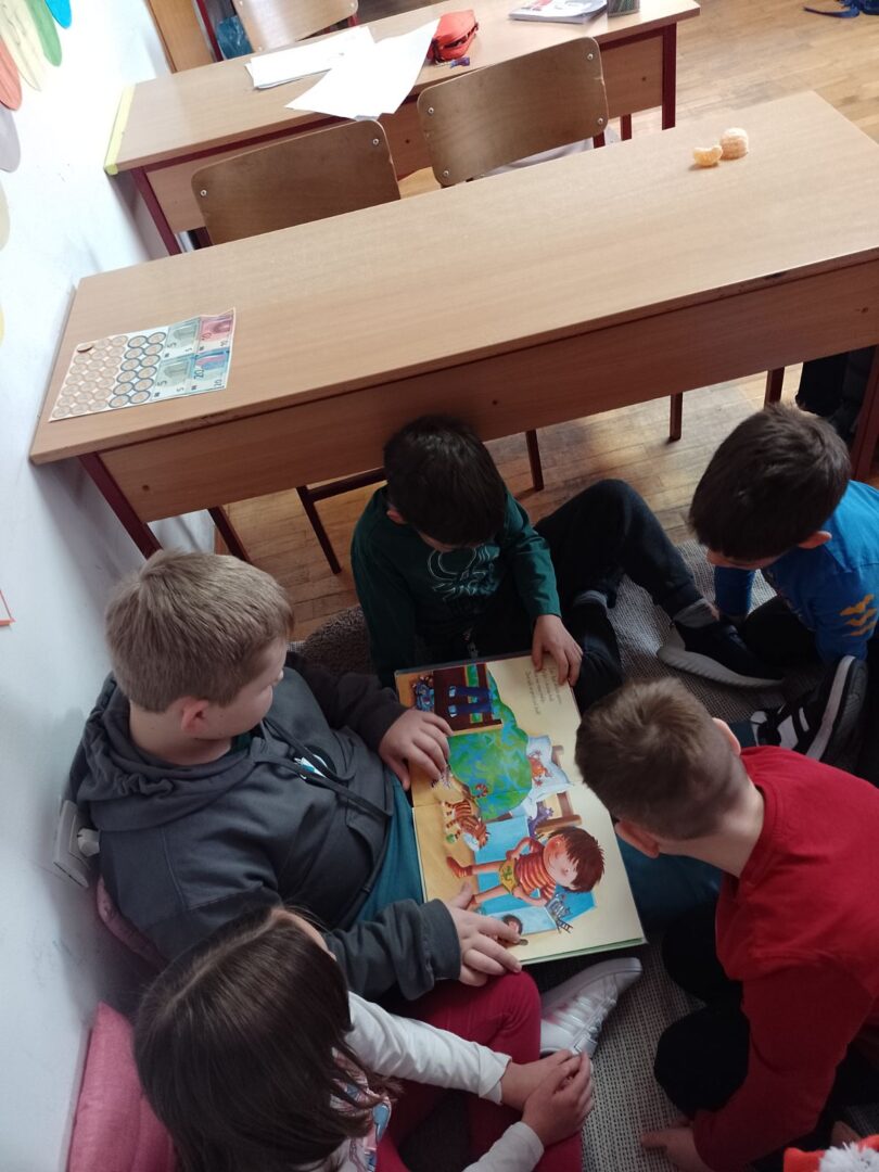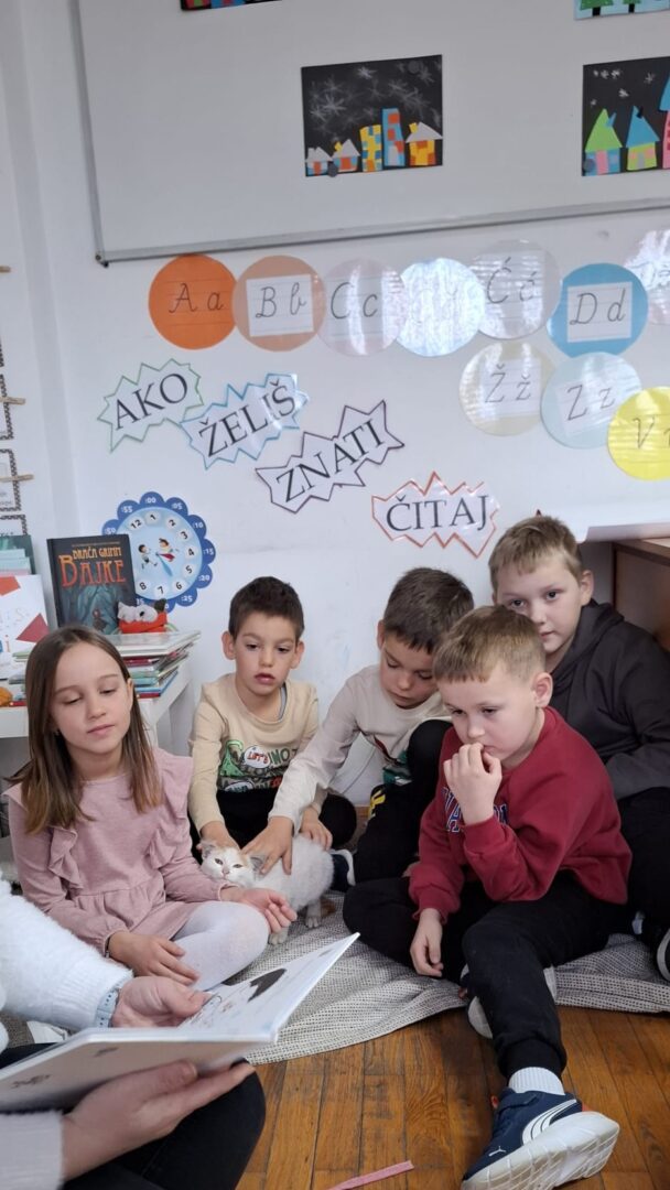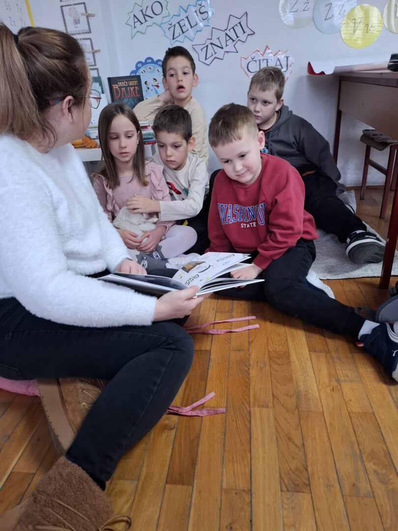 Svakog dana tijekom nastave odvojimo 15 minuta da bismo čitali priče. Učenici sami biraju priču koju žele slušati i na taj način kroz zajedničko čitanje potičemo maštu i razvijamo čitateljske navike. Nakon pročitane priče, učenik 4.razreda, koji je dio našeg kombiniranog razrednog odjela, pomaže nam ispuniti dnevnik čitanja. Bilježimo ime autora, naziv priče, nepoznate riječi, razgovaramo o likovima, njihovim postupcima i situacijama koje su se dogodile.