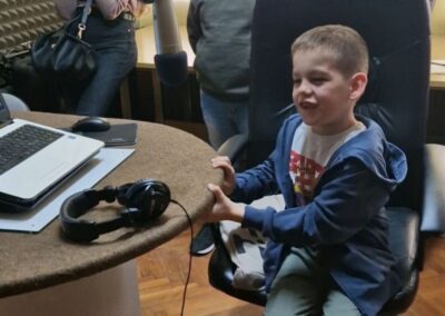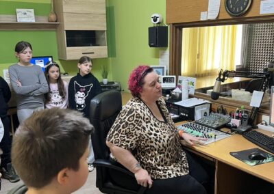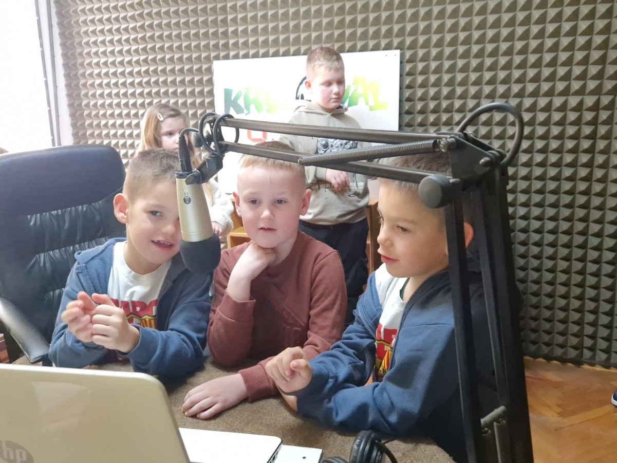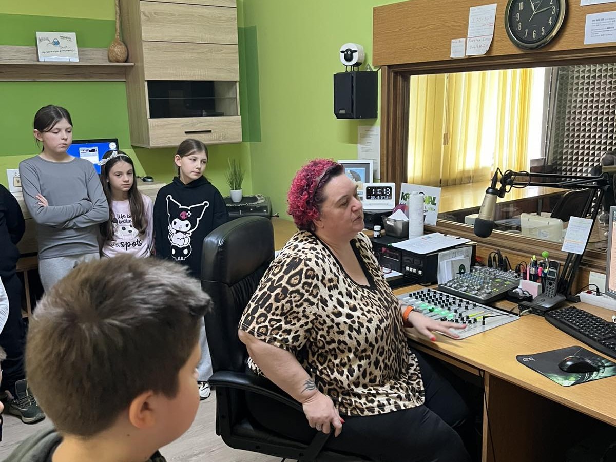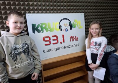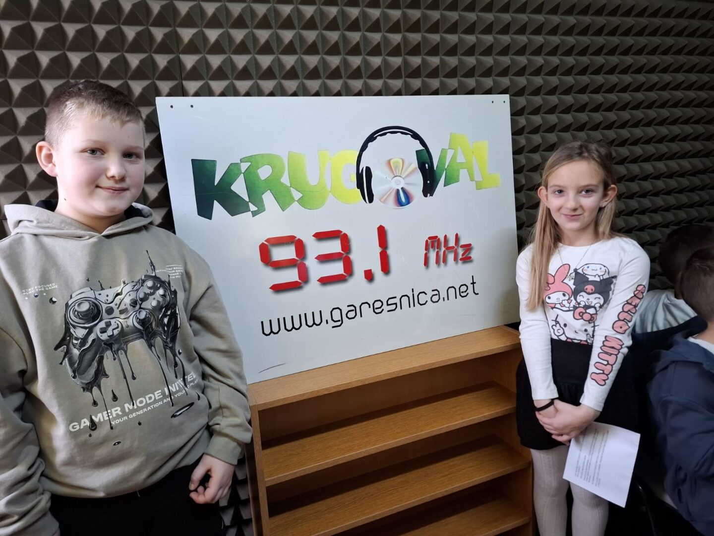 Nakon filma učenici su posjetili Krugoval Garešnica. Ondje su obišli redakciju i tehnički dio radija te saznali kako nastaje radijski program – od pripreme sadržaja do emitiranja. Iako pomalo uplašeni, po prvi su put sjeli u voditeljsku stolicu i u eteru ispričali nekoliko rečenica o aktivnostima u svojoj školi.