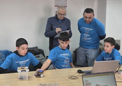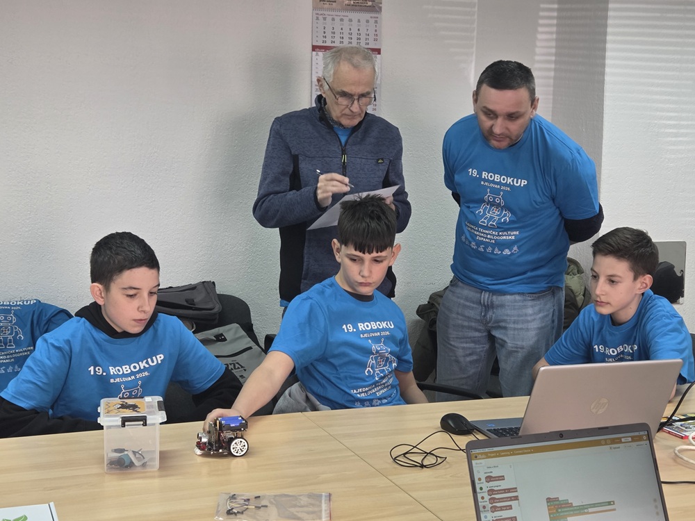 U Bjelovaru 19. ožujka 2026. održano je u prostorijama Zajednice tehničke kulture Bjelovarsko-bilogorske županije županijsko ekipno Natjecanje u elementarnoj robotici. Našu školu je predstavljao tim ROBO ViMaDa u kojem su sudjelovali učenici Vito Melvan, Marko Kovač i Damjan Dragozet u pratnji mentorice Vlatke Vasik Šoufek. Natjecanje se sastojalo od dva zadatka, prvi zadatak bio je strujni krug s dva serijska prekidača i tri svjetleće diode, a drugi zadatak je bilo programiranje robota koji je trebao doći do prepreke i zaustaviti se na određenoj udaljenosti od prepreke te odraditi zadatak prema želji (naši učenici su isprogramirali zadnji dio da ledice naizmjenično svijetle u duginim bojama). Učenici su ostvarili 4. mjesto na Natjecanju. Čestitamo učenicima na ostvarenom rezultatu te tako otvaramo vrata natjecanja iz elementarne robotike i sljedećih godina.