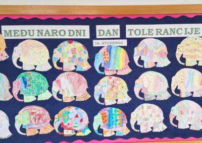 Hodnik škole je prigodno ukrašen sjećanjem na Vukovar. Plakat su izradili učenici 8.b razreda Filip Gagula i Katja Đurin, dok su učenici 8.d razreda Lovro Škreblin i Ida Jovanović izradili makete simbola Vukovara. U hodniku su bili postavljeni i likovni radovi učenika šestih razreda s motivom vučedolske kulture, Orionom.