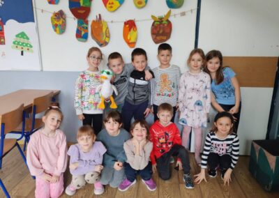 Jedna od planiranih aktivnosti je razmjena knjižnog junaka. Učenici izaberu jednog lika iz pročitanih slikovnica i izrade ga, a zatim, uz bilježnicu u koju će pisati njegove dogodovštine, pošalju partnerskoj školi. Mi smo izabrali lik iz slikovnice „Ideja od milijun dolara“, jednu od simpatičnih patkica poduzetnica. Patka Zlatka, kako su je okrstili naši prvašići, otputovala je danas u Osnovnu školu Ivana Meštrovića, u 1. d.